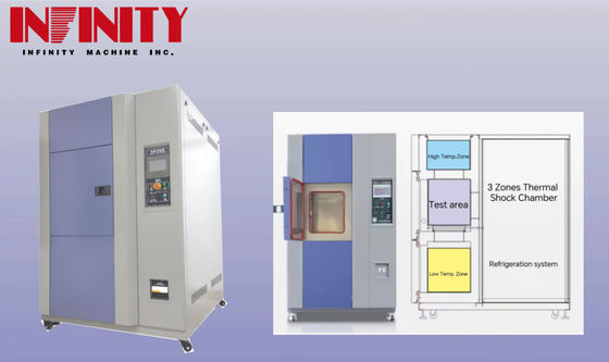La cámara de ensayo de choque térmico está diseñada para probar la capacidad de los productos para soportar cambios bruscos de temperatura.Está equipado con un sistema de refrigeración de alto rendimiento y un potente sistema de calefacción para producir rápidamente y con precisión los cambios de temperatura deseadosLa cámara dispone de una gran ventana de visualización e iluminación interior para una fácil observación del producto durante las pruebas.y solución de problemas de la cámaraTambién ofrecemos servicios de calibración y mantenimiento para garantizar la exactitud y fiabilidad de los resultados de las pruebas.